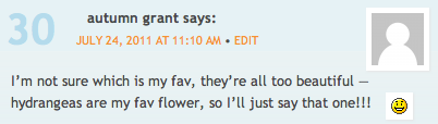 I’m not sure which is my fav, they’re all too beautiful — hydrangeas are my fav flower, so I’ll just say that one!!! 🙂