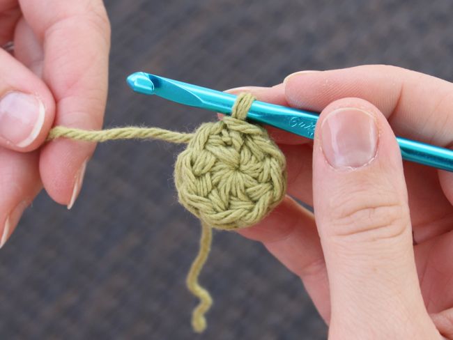 Step 8: Pull loose yarn end to tighten circle. Make sure you weave in this yarn end securely as you are finishing your project so that it will not unravel.