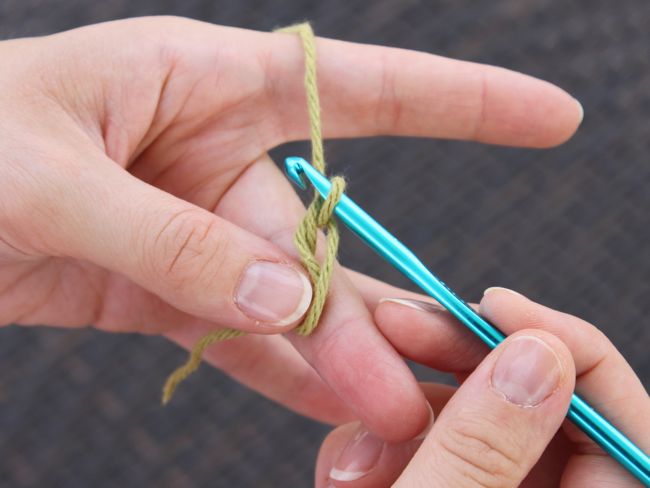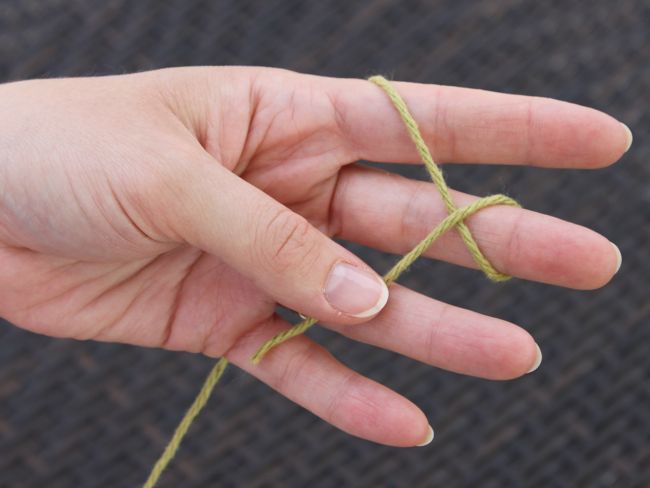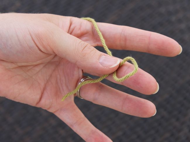 Step 1: Wrap yarn around your middle finger, forming an “X.”